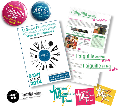 Contexte : Côté Salons est un organisateur de salons spécialisés dans les travaux d’aiguille et les loisirs créatifs textiles (couture, tricot, crochet, patchwork…). Chargée de la communication, on m’avait confié la refonte des sites (voir page Webdesign) mais également la création d’un certain nombre d’éléments graphiques web et des supports print.