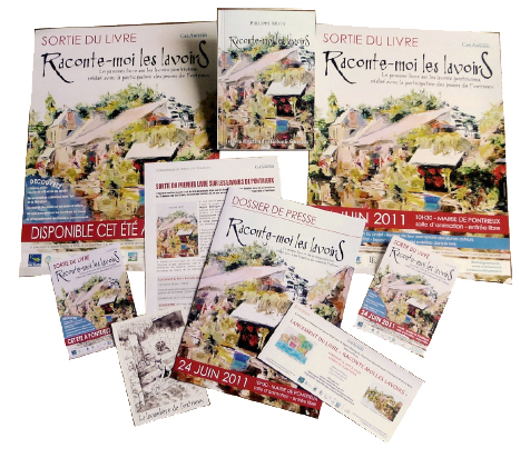 Contexte : l’édition du livre « Raconte-moi les lavoirs » sorti à Pontrieux en Côtes d’Armor en 2011 (voir page Edition). Outre la réalisation du site (voir page Webdesign), j’ai également réalisé la maquette du livre ainsi que tous les supports print destinés à la presse, à l’affichage et à l’événement de lancement.