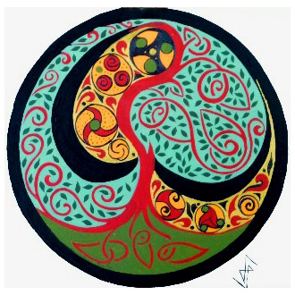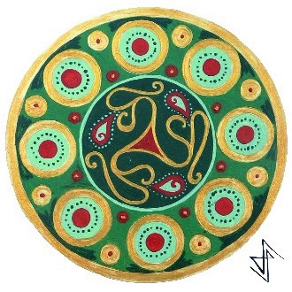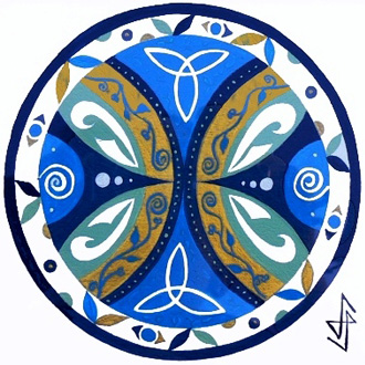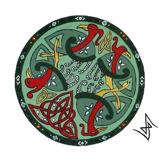 Travail perso Rosaces Galets Dragons Créations inspirées des livres de motifs de David Balade et de Michel Le Gallo, ainsi que d’enluminures provenant de divers ouvrages médiévaux tels que le Livre de Kells.